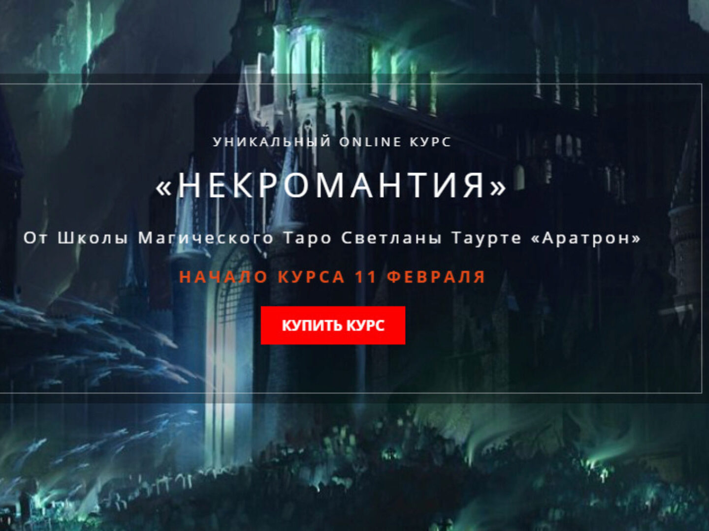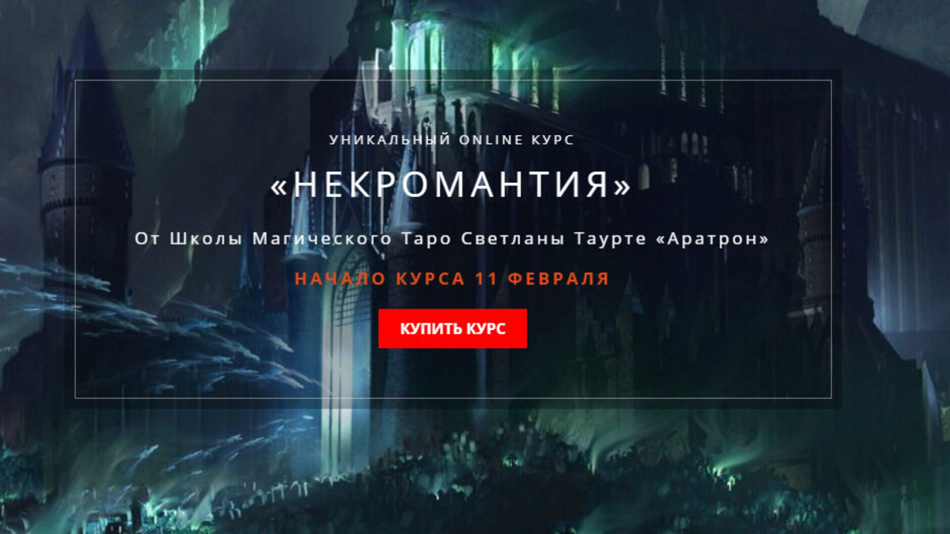 [Аратрон] Некромантия. Высшая ступень посвящения Программа курса Урок 1-й Духи Смерти Мистерия Смерти. Переход, трансформация, рождение. Магия Смерти. Ритуал Поцелуй Смерти. Черная порча. Проклятие пустоты. Защита от Смерти. Защитный покров от разрушения и катаклизмов. Урок 2-й Духи богатства Эта