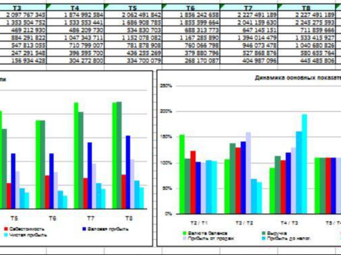 Расчет по Балансу и ОПУ (формат РСБУ) 70 коэффициентов, 50 графиков