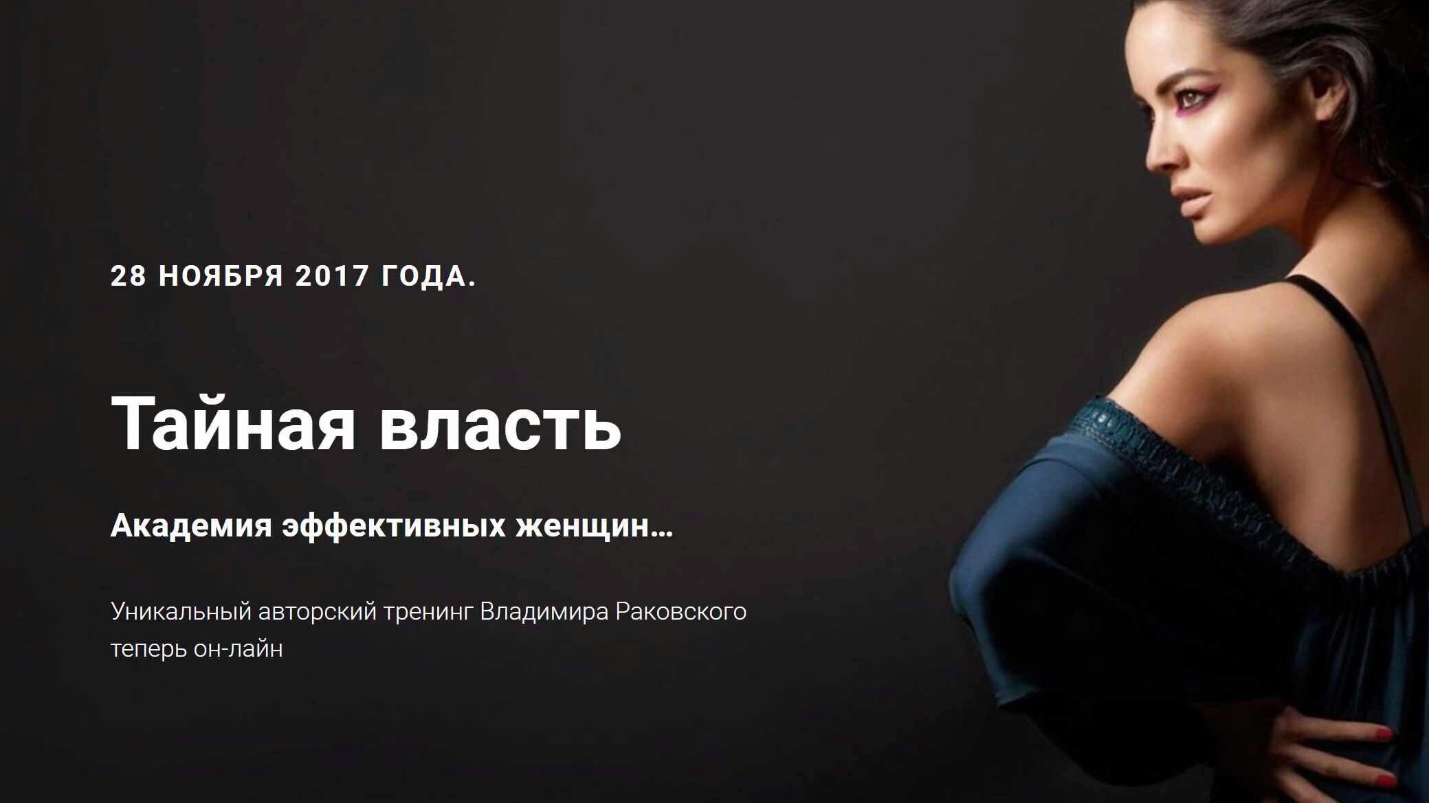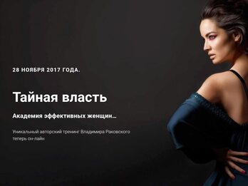 Тайная власть — это курс о Женщинах и для Женщин. Это наука для тех, кому нужна уверенность в завтрашнем дне, кто устал быть «обычной женщиной», игрушкой в руках судьбы-злодейки. Если ты чувствуешь, что пришла пора стать властительницей мира — милости просим! Если хочешь добиться успеха — этот тренинг для Тебя!