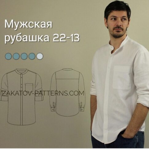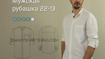 Рубашка прямого силуэта, умеренного объема, с рубашечным рукавом. Модель с планкой по переду и воротником-стойкой. Длина рукава регулируется патой Уровень сложности: выше среднего Прибавка на свободу облегания (на полуобхват) По груди – 8 см Рекомендуемые материалы Мягкие льняные ткани Мы