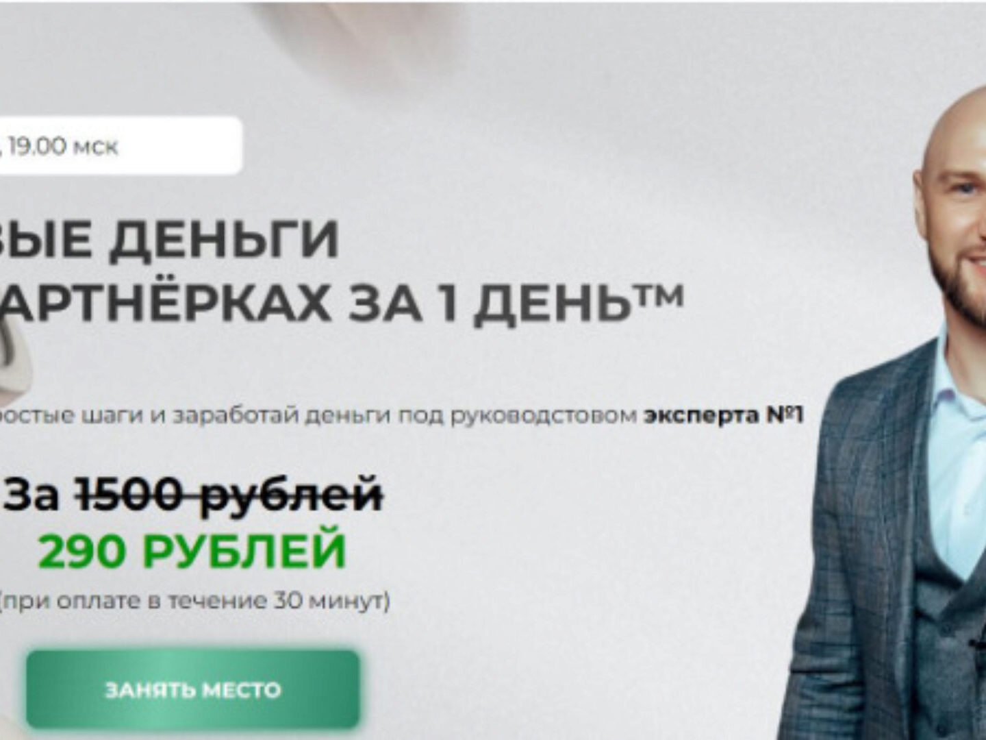 Абсолютно каждый человек может зарабатывать на партнёрках, если понимает что конкретно нужно делать. На мастер-классе я открою экран своего ноутбука и покажу шаг за шагом что нужно сделать, чтобы за 1 день получить первые комиссионные и открыть для себя новую дополнительную возможность для заработка.