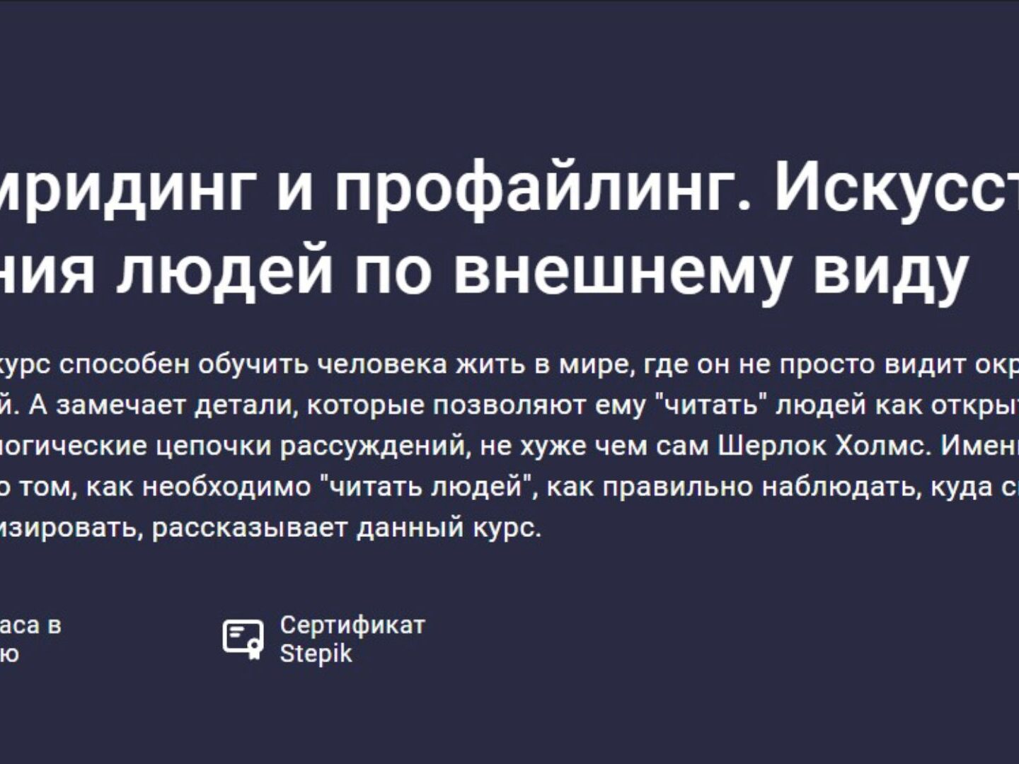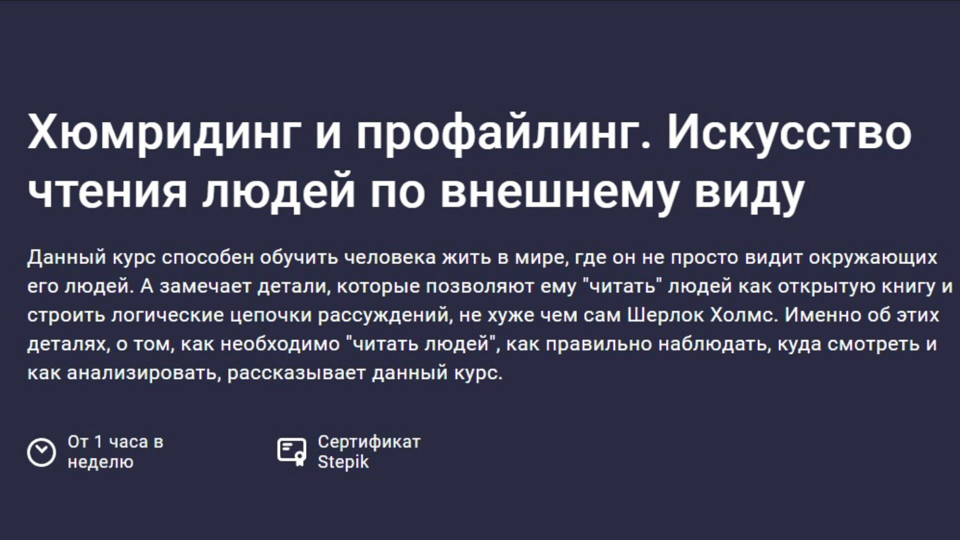 Отзывы о курсе [Stepik] Хюмридинг и профайлинг. Искусство чтения людей по внешнему виду (Vladislav Lug)