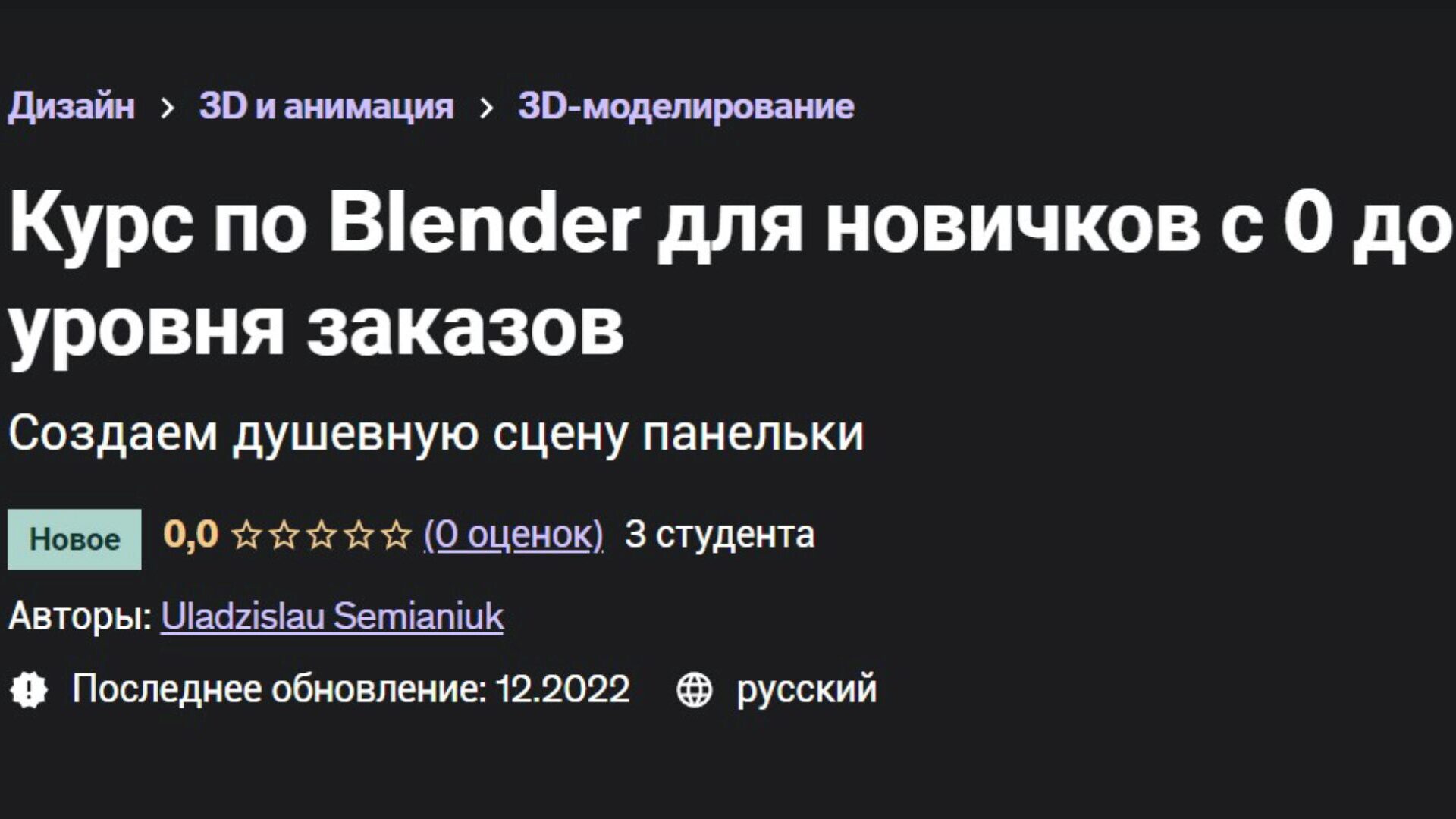 Владислав Семянюк «Курс по Blender для новичков с 0 до уровня заказов» — Udemy