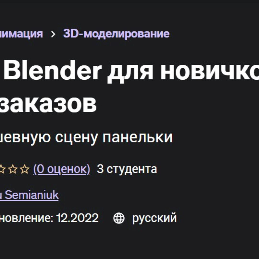 Отзывы о курсе «Курс по Blender для новичков с 0 до уровня заказов» от Владислава Семянюка