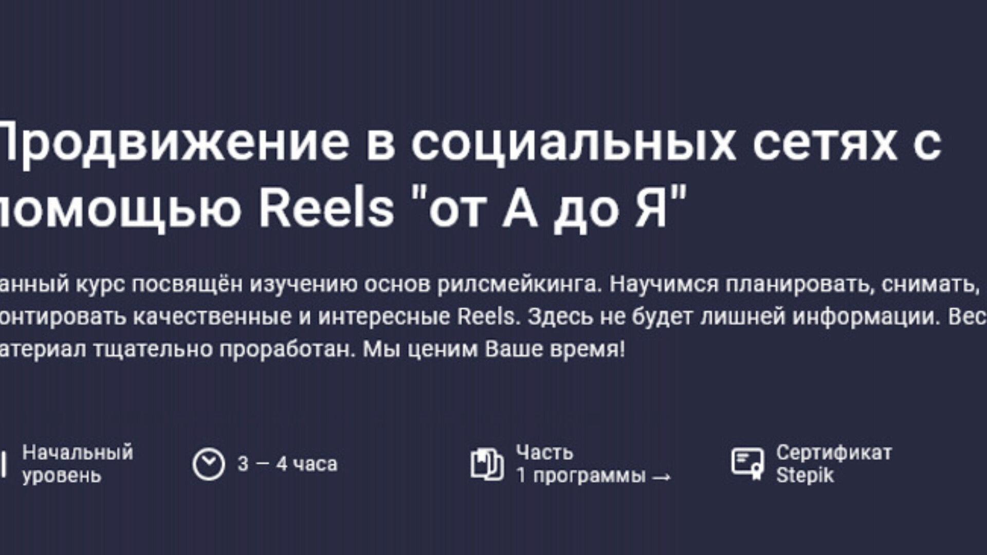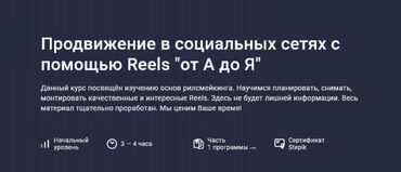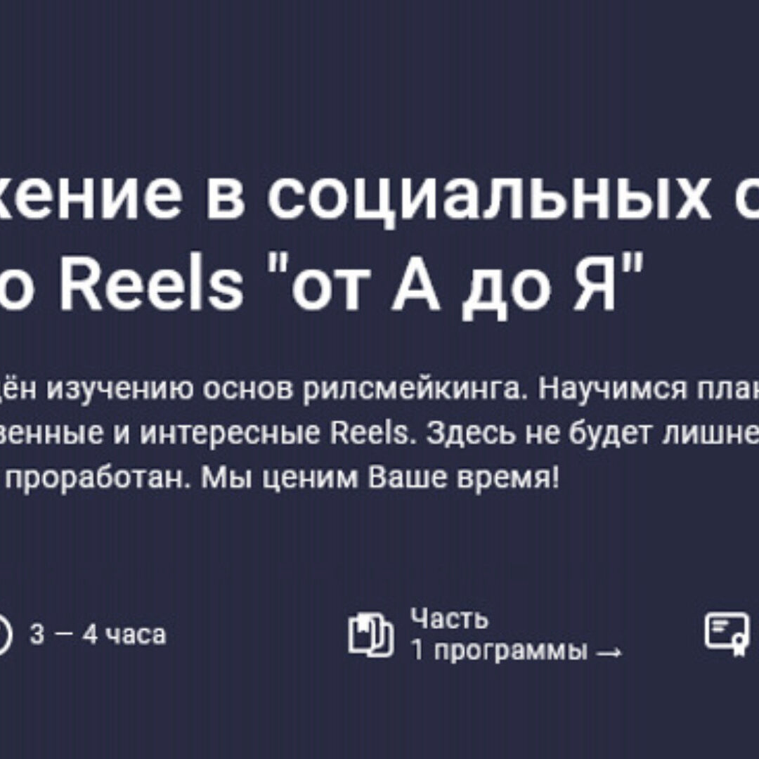+ БОНУС — материал курса в pdf-формате, который можно скачать и распечатать для удобства. А также авторский контент-план для планирования Reels.