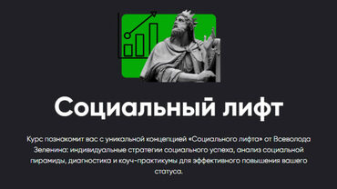 Курс познакомит вас с уникальной концепцией «Социального лифта» от Всеволода Зеленина: индивидуальные стратегии социального успеха, анализ социальной пирамиды, диагностика и коуч-практикумы для эффективного повышения вашего статуса.