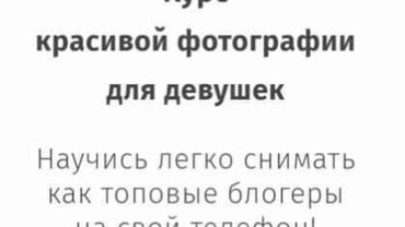 Онлайн курс «Мобильная фотография это просто». Тариф «Я сам» (photo_by_lada) Программа курса Правила и законы композиции Сочетание цветов в кадре Как найти правильный свет Секреты позирования Обработка портрета без эффекта замыливания Пластика тела Замена фона «волшебные фото» Работа с «мусором» в
