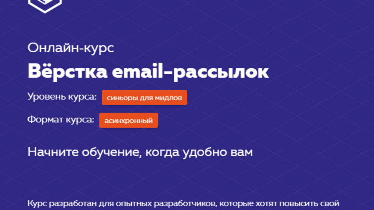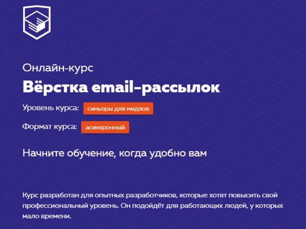 В начале курса разберём, в чём заключается разница между привычной вёрсткой веб-страниц и вёрсткой писем для почтовых клиентов. Разберём важные аспекты вёрстки для почтовиков, рассмотрим особенности почтовых клиентов, а также некоторые тонкости.