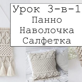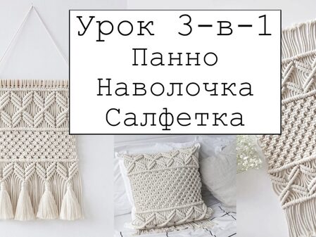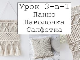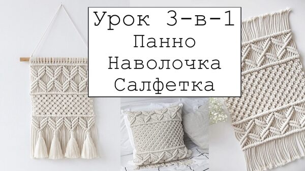 Видео-урок «3-в-1: панно, наволочка, салфетка» детально и понятно объясняет процесс плетения трёх изделий: