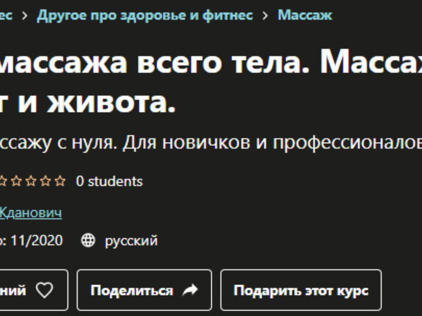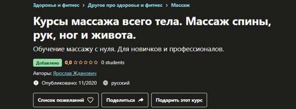 Ярослав Жданович «Курсы массажа всего тела. Массаж спины, рук, ног и живота» — Udemy