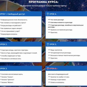 + Получите основные навыки и пошаговую схему чтения карт Таро в любом раскладе.