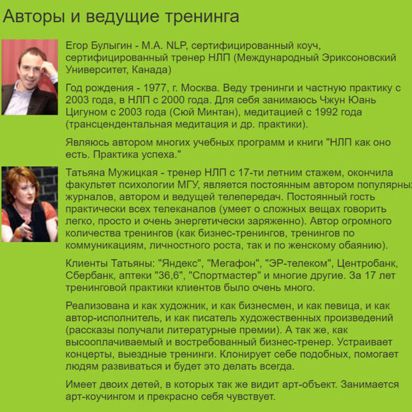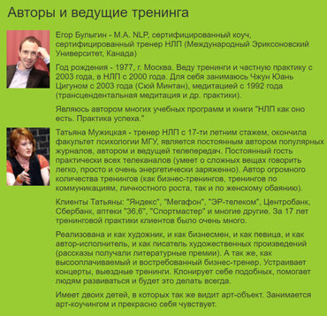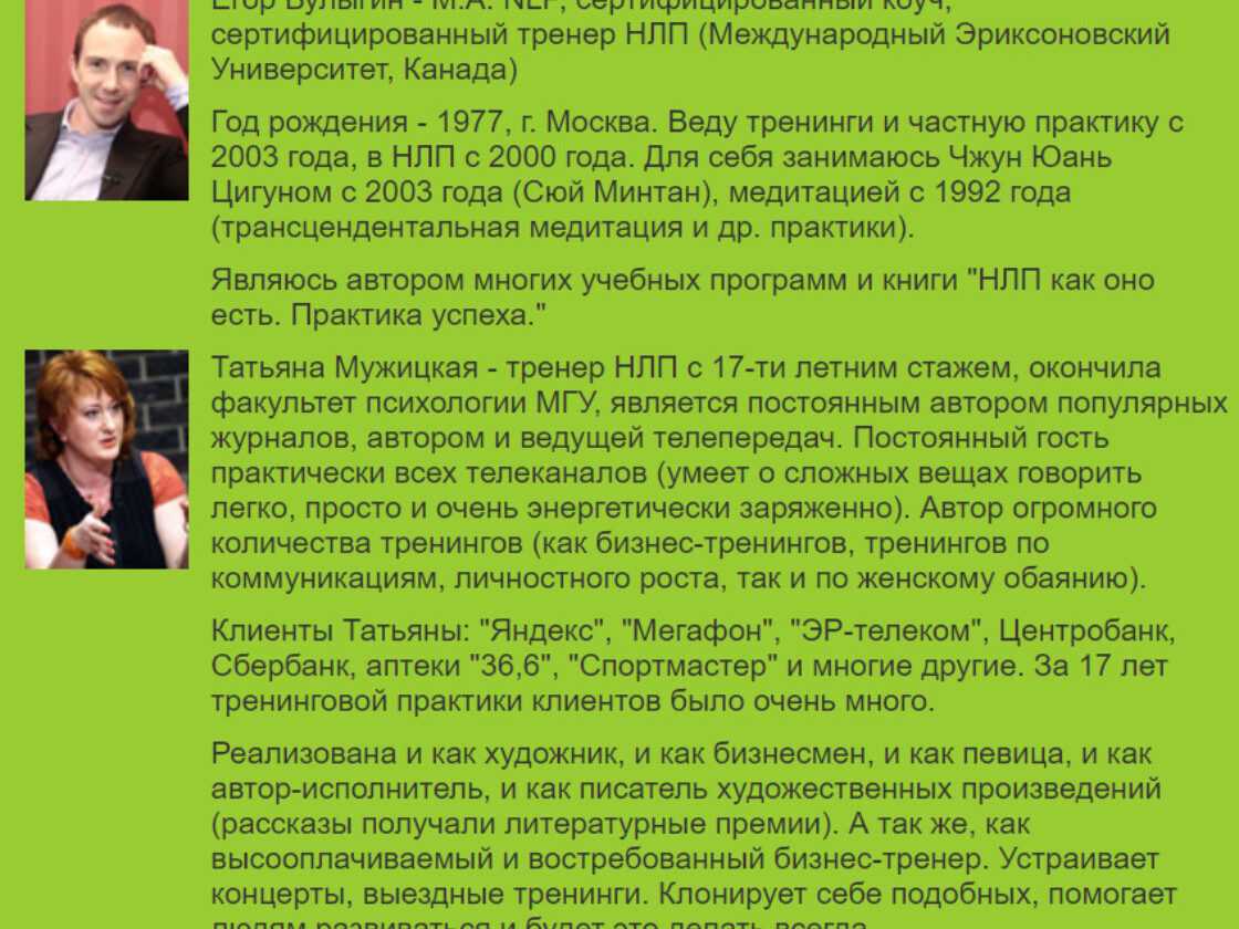 Купить другие курсы и тренинги от Егора Булыгина, Татьяны Мужицкой