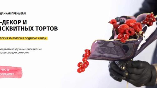 Научитесь делать 5 разных бисквитных тортов, потрясающий декор и 3 типа 3D-тортов!