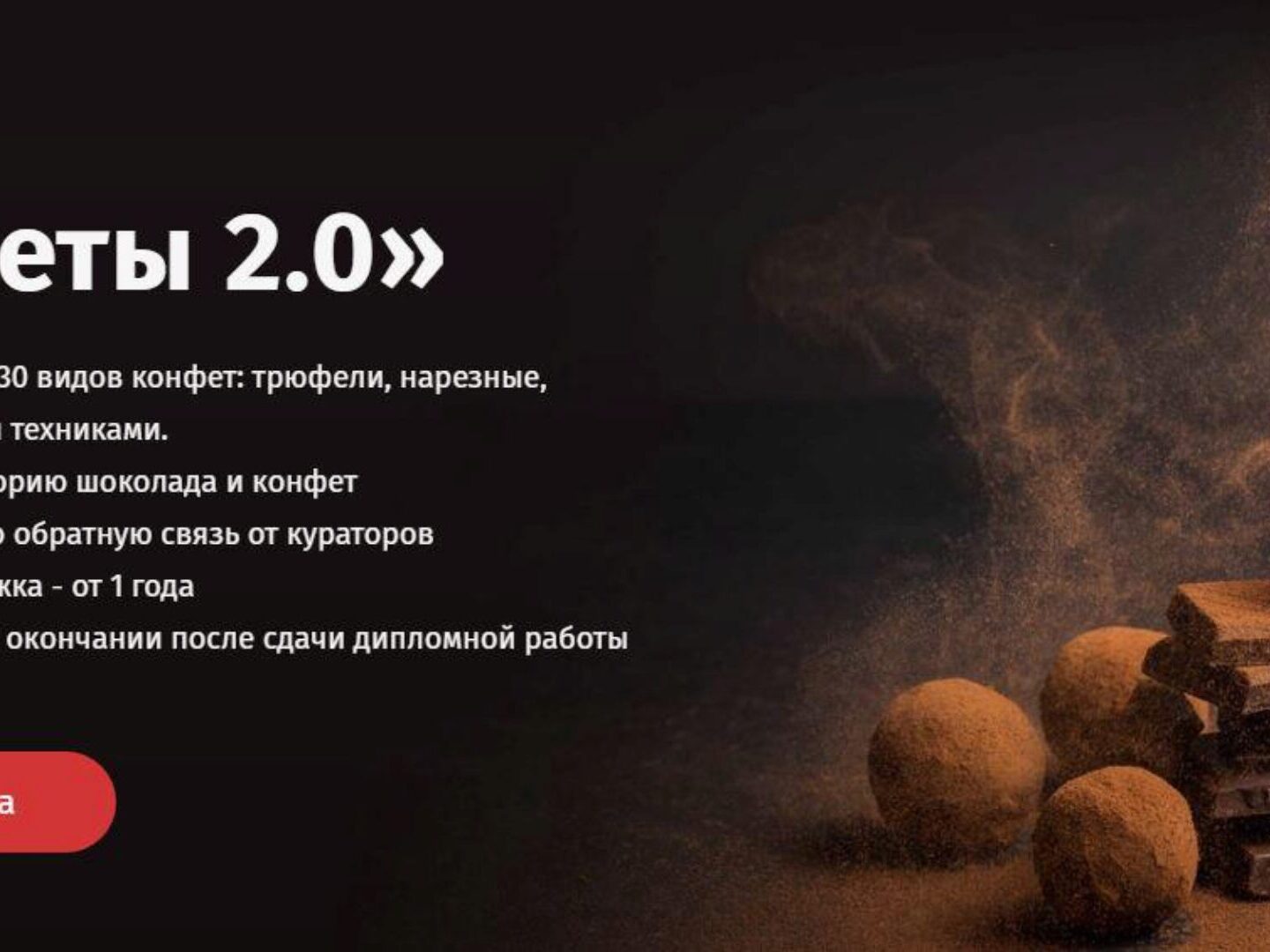 На этом курсе вы научитесь не просто работать с шоколадом, а начнете чувствовать его и понимать. Научитесь калькуляции рецептов и сочетаемости вкусов. После прохождения курса, вы сможете открыть свой шоколадный бутик.