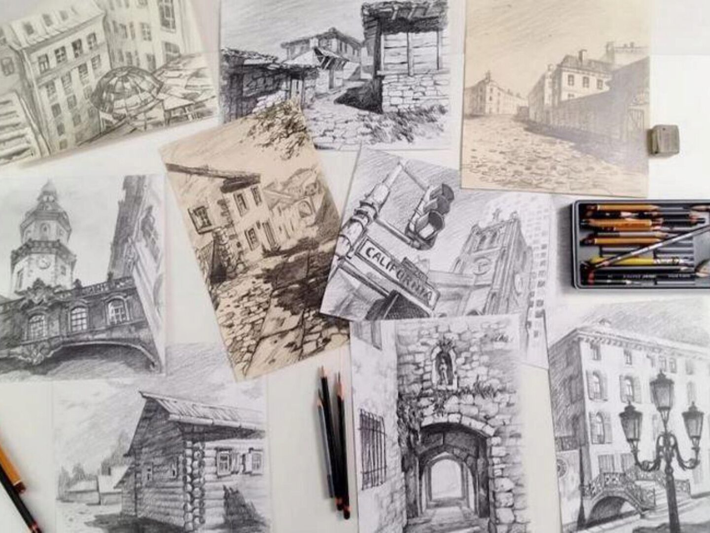 Вместе с Екатериной Бердюгиной вы создадите 9 картин. Сначала мы будем делать предварительный эскиз, который поможет определиться с композицией, ракурсом и тональным строем. Затем вам предстоит выполнить чистовую работу: от построения до финальной проработки важных деталей. Вы поймете, как влияет на впечатление от пейзажа выбор ракурса, научитесь показывать глубину пространства, фактуры и текстуры.
