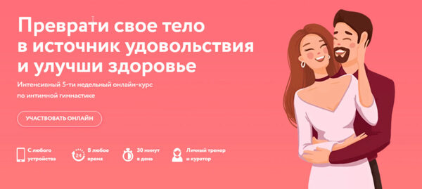 Интенсивный 5-ти недельный онлайн-курс по интимной гимнастике Чего вы добъетесь на курсе за 5 недель Во время курса вы прокачаете свои интимные мышцы под руководством опытных тренеров, а так же сделаете это главной полезной привычкой Вы улучшите качество секса — он станет таким, каким еще никогда