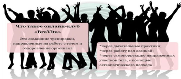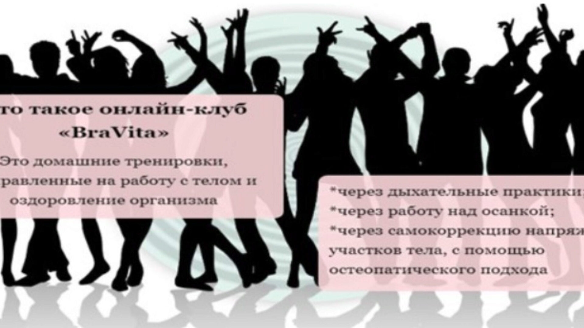 Онлайн-клуб «Остеокод-BraVita»-2 [Екатерина Брагина] Это домашние тренировки, направленные работу с телом и оздоровление организма *через дыхательные практики; *через работу над осанкой; *через самокоррекцию напряженных участков тела с помощью остеопатического подхода Физические упражнения могут