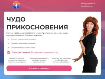 Ты попала по адресу, если: Тебя не устраивает фигура, ты ограничиваешь себя в еде, но не можешь постройнеть У тебя есть сутулость, сколиоз, тебя мучают боли в шее и спине Тебя беспокоят отеки на лице, щеки и второй подбородок Твой цикл скачет, гормональный фон сбит, а менструации проходят