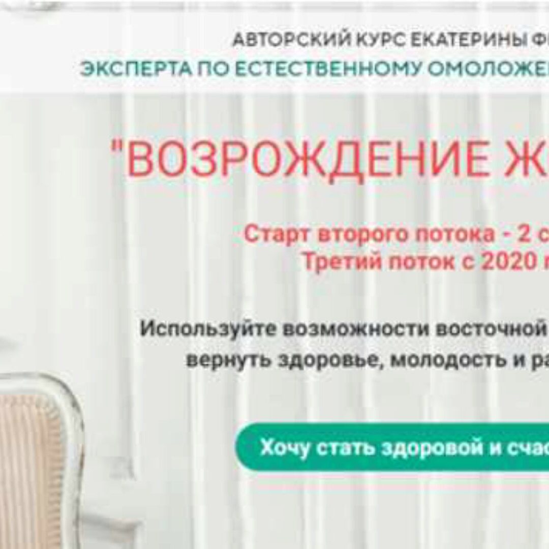 Авторский курс от мастера восточных практик и эксперта по естественному омоложению и оздоровлению Екатерины Фёдоровой Пройдите углублённый курс по восстановлению женского здоровья и продлению молодости, проработайте эластичность мышц всего тела и связок тазового дна и почувствуйте себя снова
