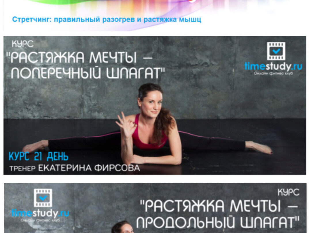 Екатерина Фирсова Стретчинг + Курс «Растяжка мечты» продольный и поперечный шпагат — Timestudy