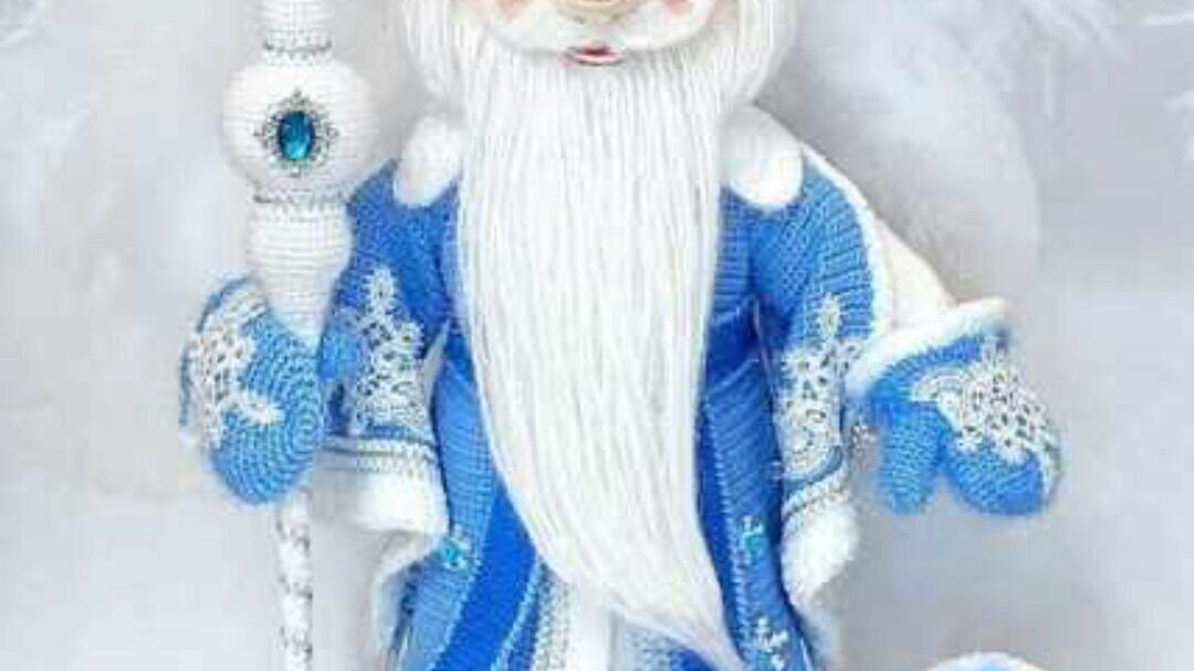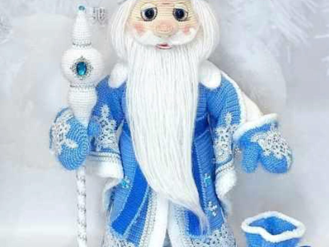 Вяжем тело куклы, оформляем лицо, волосы, бороду и усы.