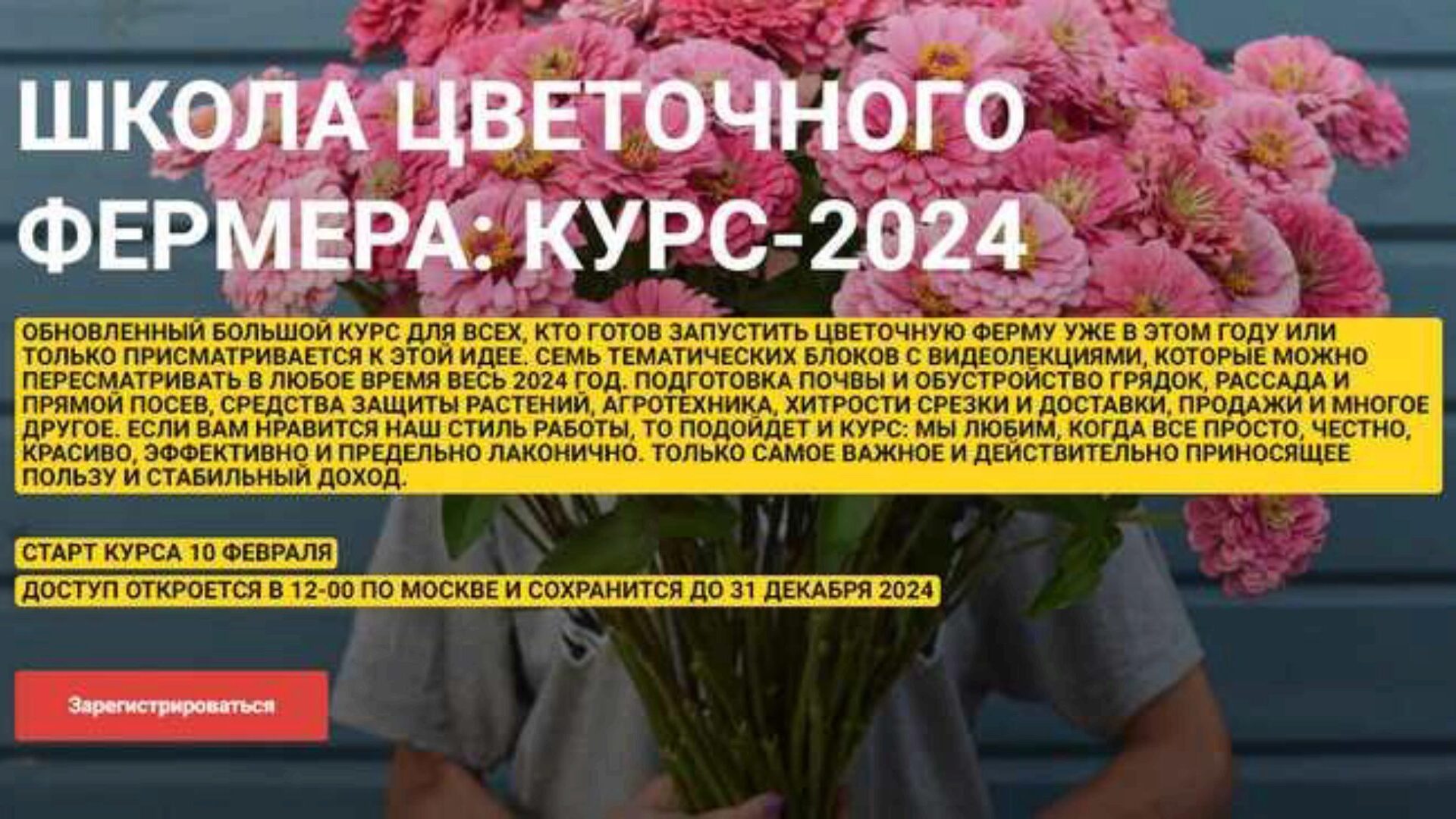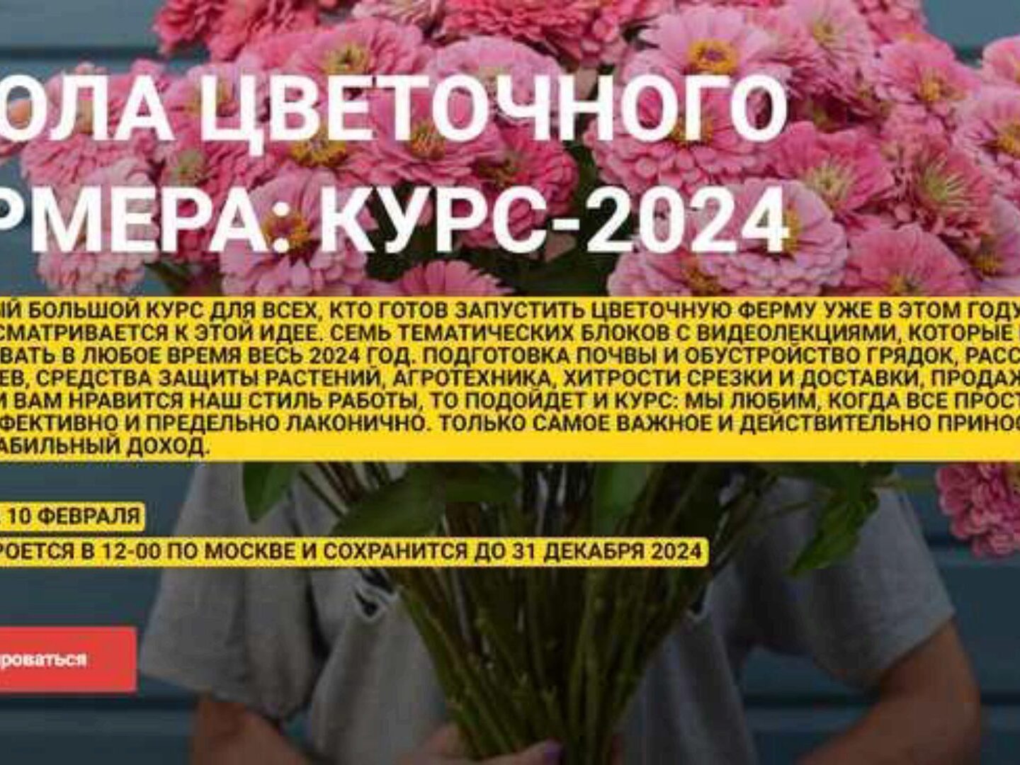 Большой вебинар для начинающих фермеров. Секреты выращивания и ведения инстаграм, маркетинг и капельный полив, агроткань и правила срезки. Продолжительность - 6,5 часов. Доступен до 14 мая 2021 года