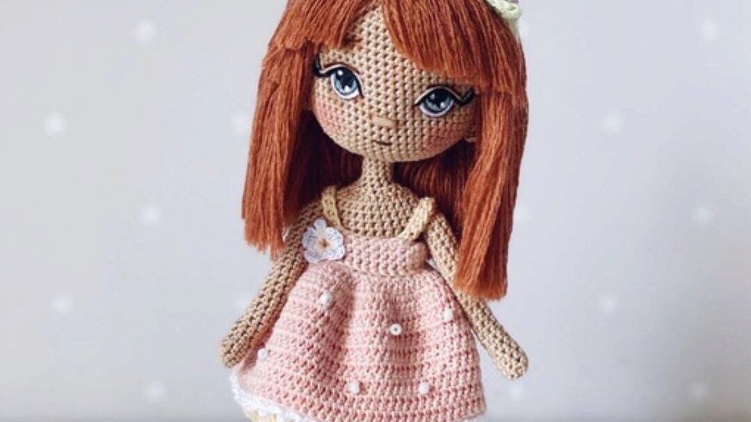 МК в формате pdf. В МК входит вязание тела (ножка фигурная), моделирование личика, прическа. Пошаговое описание наряда, вышивки, ободочка и горшка с цветами. Вставка каркаса и тонировка.