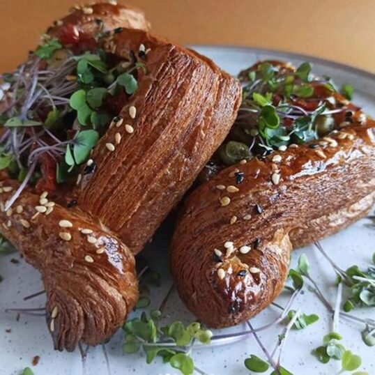 цельнозерновой даниш с тремя сырами и маринованными грибочками