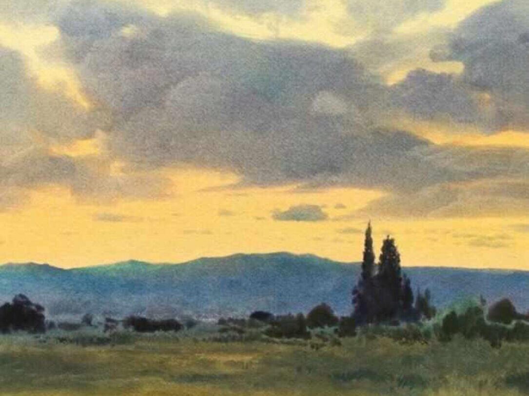 - Услышите об особенностях работы над пейзажем в технике «мокрым по мокрому»;