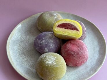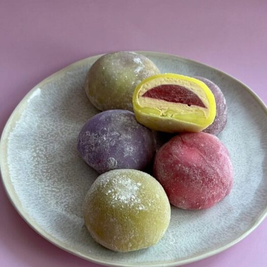 - 10 начинок: 1. голубая матча-черника-апельсин 2. карамельный чизкейк 3. темный шоколад-малина 4. маракуйя-мак 5. лайм-клубника 6. ферреро роше 7. клубничный тирамису 8. мята-лесные ягоды 9. лаванда-персик 10. три сыра-шоколадный трюфель - три теста, два вида приготовления - большие моти,