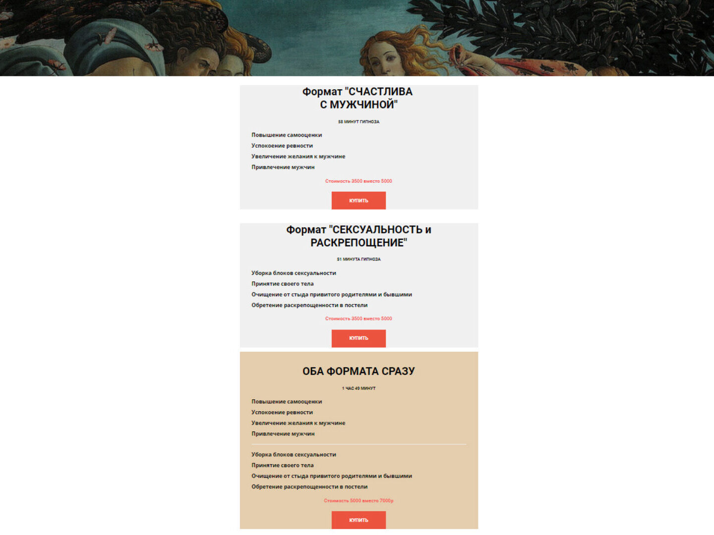 Формат «СТРАСТЬ» 51 минута гипноза Очищение от комплексов Принятие своего тела Обретение раскрепощенности в постели Дизайн и организация своей интимной жизни