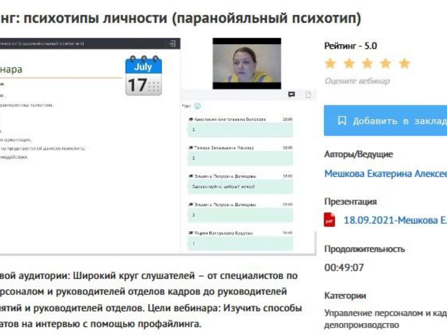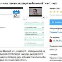 Отзывы о курсе Вебинары: «Профайлинг. Психотипы личности» от Екатерины Мешковой
