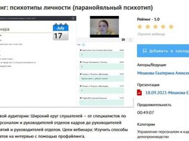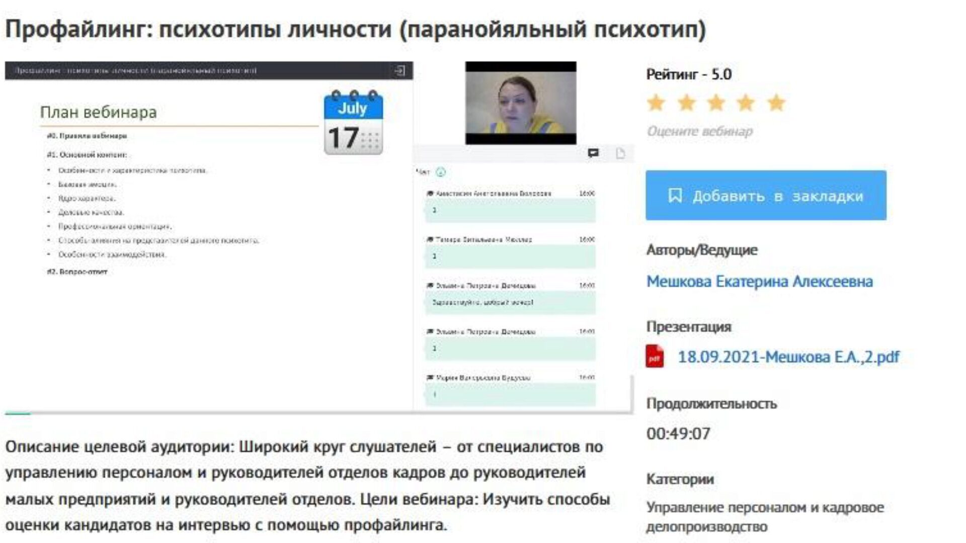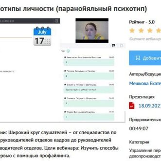 Екатерина Мешкова Вебинары: «Профайлинг. Психотипы личности» — УИПКиП