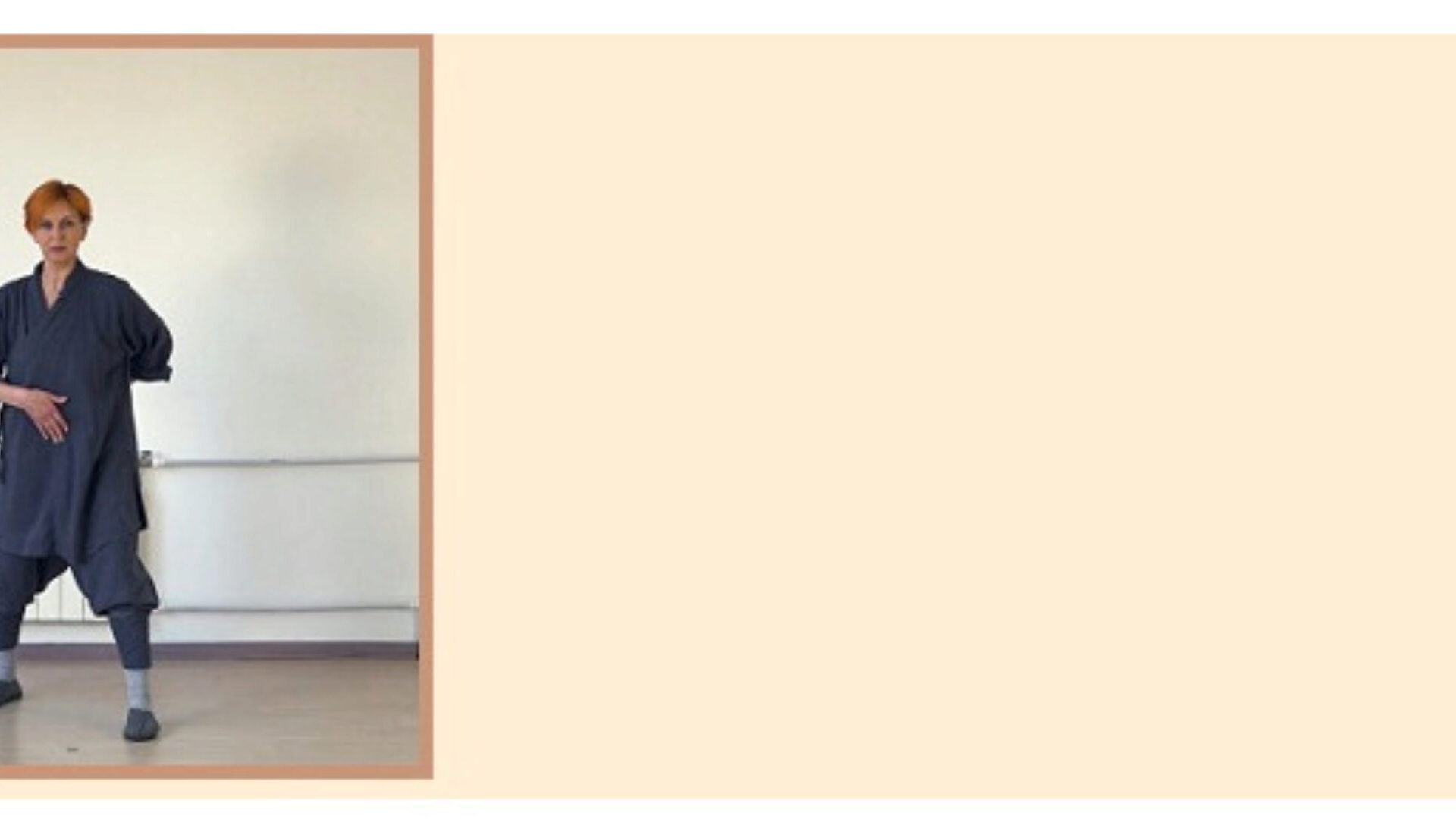 Выполняется стоя, тело выстраивается в позу Дерево (Чжан Чжуан), мягкие пружинистые движения от стоп, проводят по вашему телу волну энергии, снимая блоки, напряжения, зажимы. Важно: выстроенность тела вокруг центральной оси, расслабление мышц, легкость, синхронность движений.