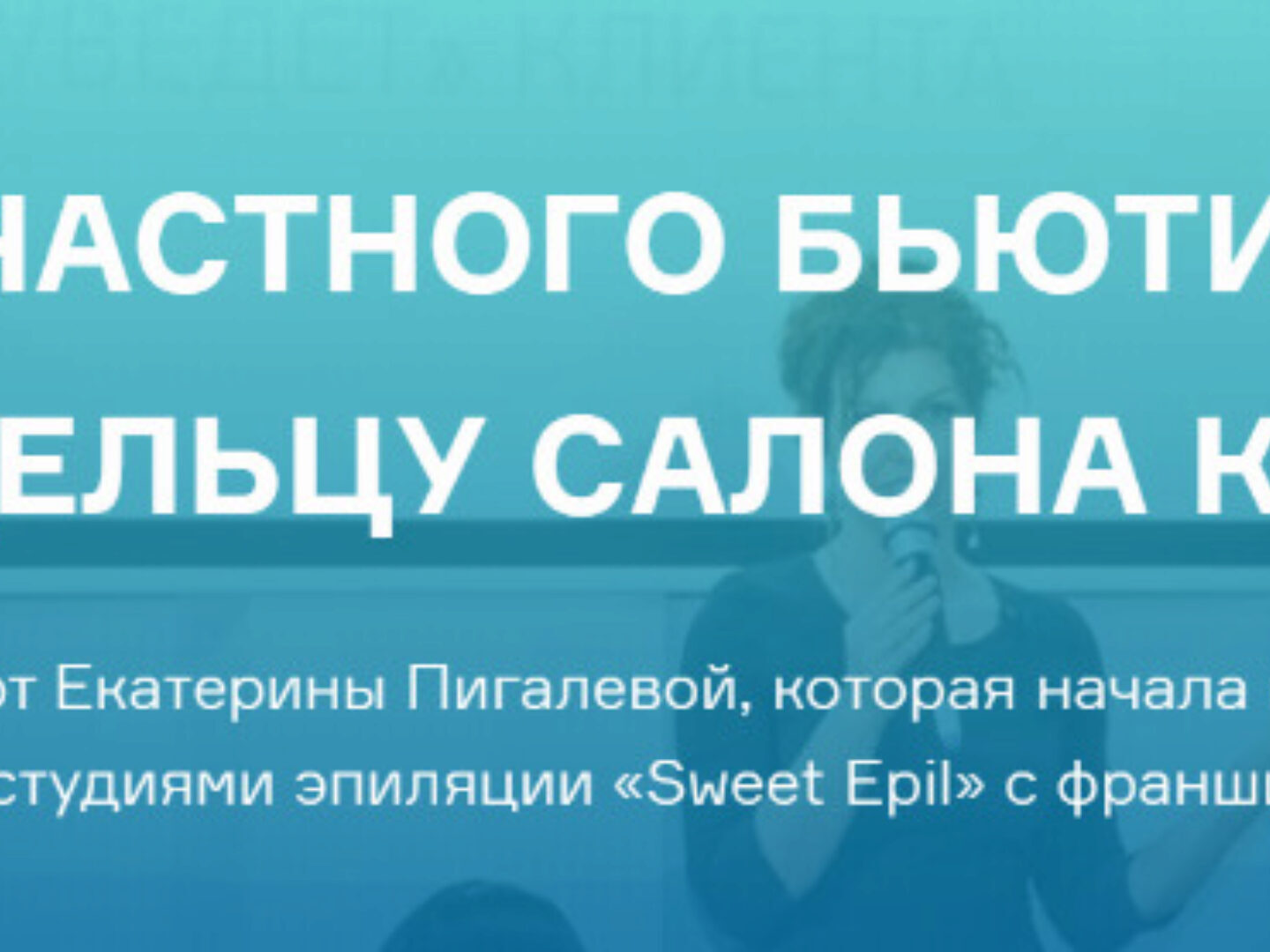 Екатерина Пигалева основательница сети из 8 студий эпиляции «Sweet Epil» по России и СНГ сети учебных центро и известного бренда профессиональной косметики «Gloria» 50 тем о «красивом» бизнесе регулярно освещается в личном блоге, ВК и на YouTube канале Екатерины с 2009 года. Спойлер: Программа 1.