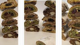 Насыщенный, вкусный и ароматный штоллен станет настоящим украшением рождественского стола. В видеоуроке «Штоллен» с ореховым марципаном, специями, цукатами и сухофруктами, настоянными на темном роме и пропитанный ореховым маслом нуазет. Видео и технологическая карта в формате PDF.