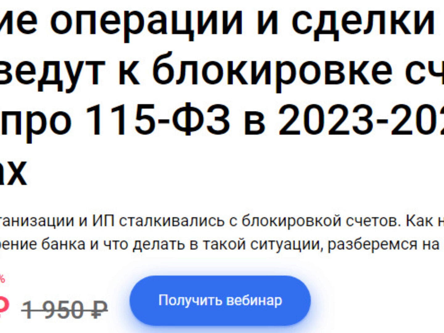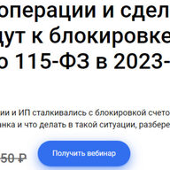 Уже больше года работает «банковский светофор» и многие ИП и компании уже столкнулись с блокировкой счета. Как избежать блокировки по 115-ФЗ, как оценить риски, какие операции вызывают подозрение у банков. Обо всем этом расскажем на вебинаре.