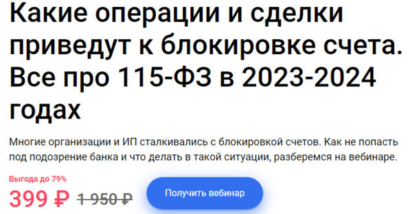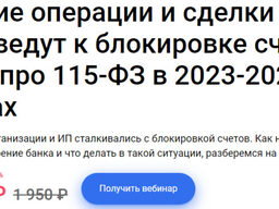 Многие организации и ИП сталкивались с блокировкой счетов. Как не попасть под подозрение банка и что делать в такой ситуации, разберемся на вебинаре.