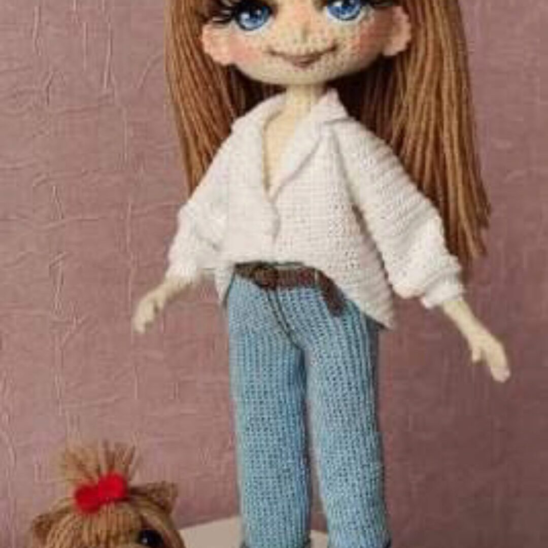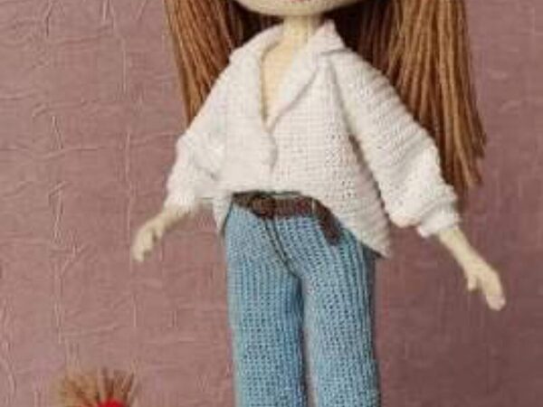МК Кукла ,Иришка,, Высота 26 см. Одежда и обувь съёмная. Ручки, ножки, шея гнутся голова поворачивается. Кукла и вся одежда кроме кардигана вяжется крючком, кардиган вяжется спицами. Мастер класс оформлен в PDF Вы получите Описание на 24 страницах, включает в себя 30 фото. Описание вязания куклы.