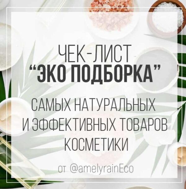 Я проделала большую работу изучив тысячи отзывов потребителей натуральной косметики, и с учетом также личного опыта использования натуральной косметики более 7 лет и создала для вас большой ЧЕК-ЛИСТ «ЭКОподборка самых натуральных и эффективных товаров косметики» для женщин, состоящий из 72 страниц и около 580 товарами с ПРЯМЫМИ ссылками на них.
