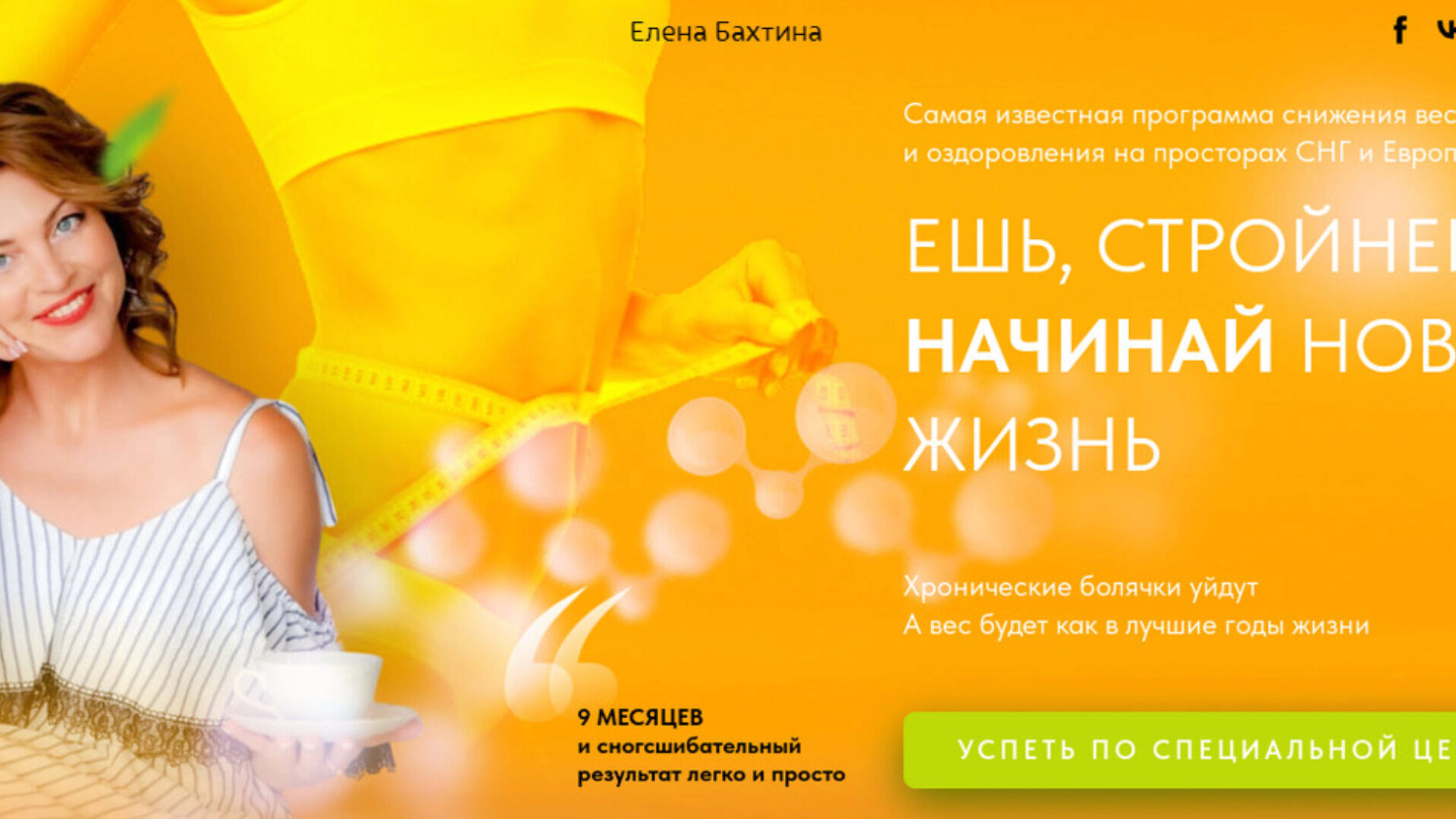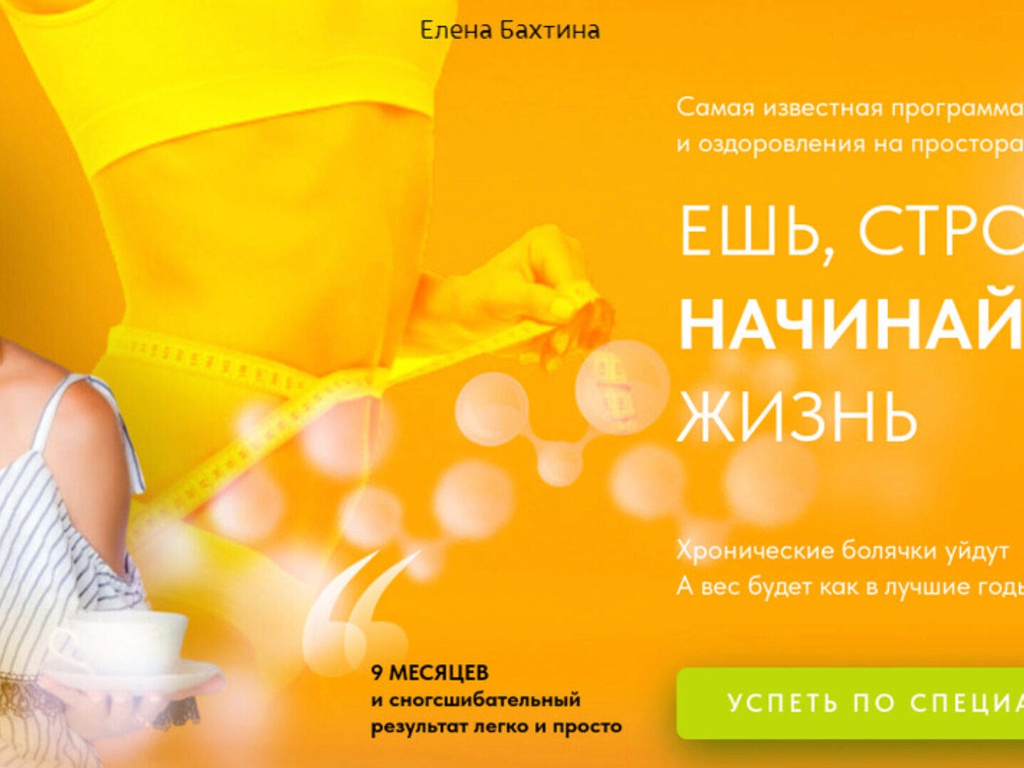 9 месяцев - и ты скажешь: «Я выгляжу моложе на 10 лет» 15 минут в день 9 месяцев 70 000 + результатов абсолютно новое тело и здоровье Революционная система СТАРОСТИ НЕТ от автора бестселлера «Старости нет, или как оставить своего доктора без работы», лауреата премии «Парижский салон», основателя