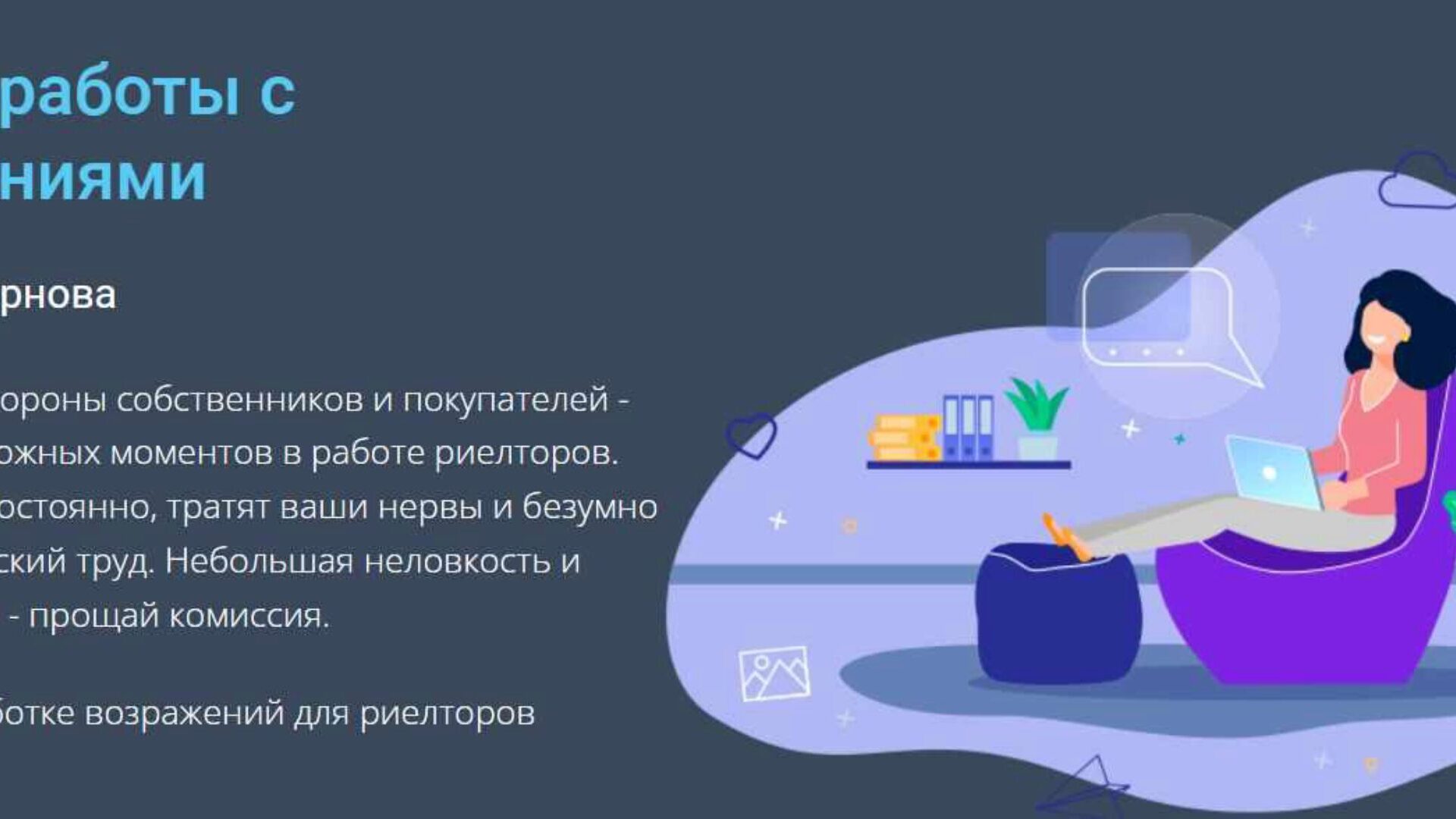Автор: Юлия Трус Программа, где вы получите выжимку прикладной информации и ВСЕ необходимые инструменты и техники для эффективной работы с возражениями. Более 50% продаж сливаются на этапе возражений! А сколько заявок вы не смогли закрыть с положительным результатом за последний месяц? Теперь