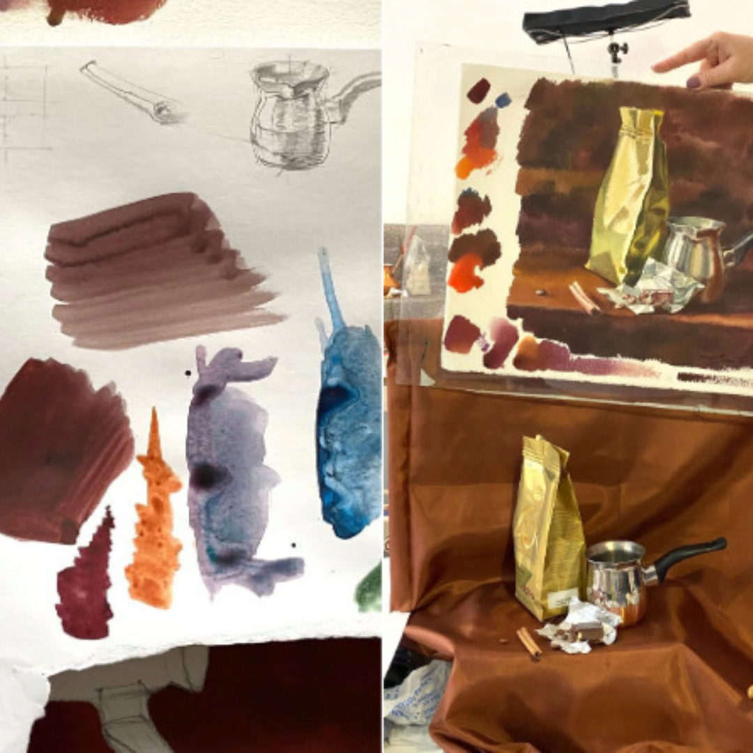 Предлагаем присоединиться к мастер-классу Елена Базановой и написать акварельный натюрморт на ароматную согревающую тему – «кофейную». Образ кофе у многих вызывает самые приятные ассоциации вкуса, цвета, и мы попробуем создать их при помощи акварельной живописи.