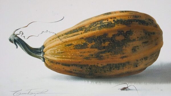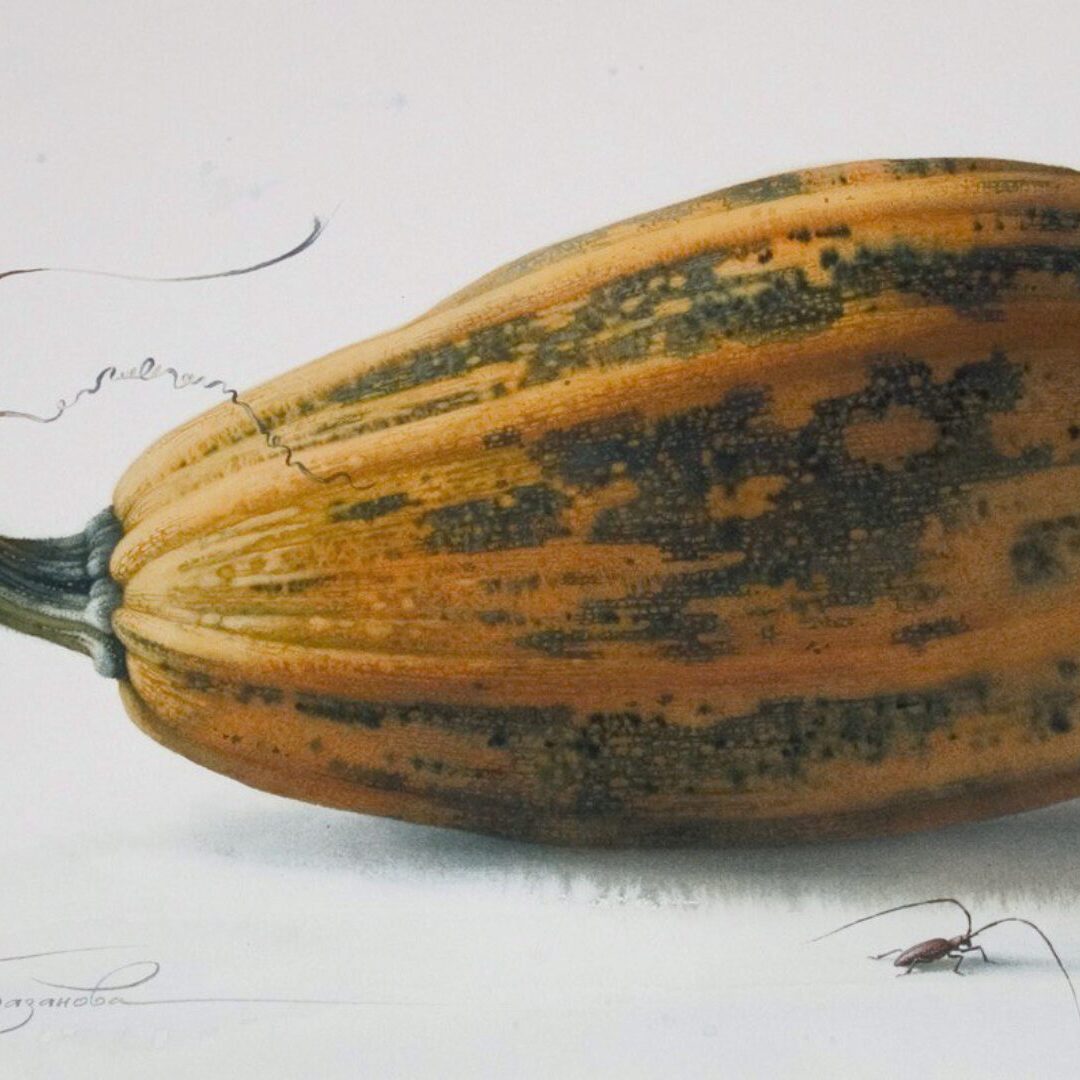 Елена Базанова «Тыквы на мешковине акварелью» — Lectoroom