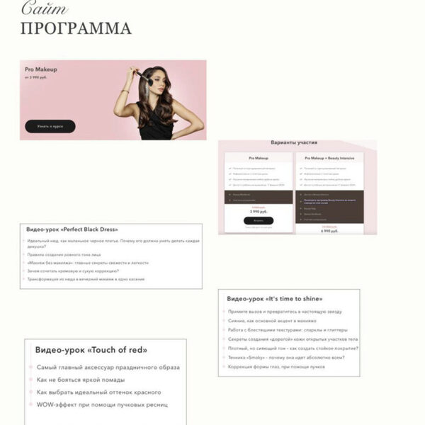 Pro Makeup Пройдя проект вы: Научитесь техникам и лайфхакам, которые скрывают визажисты Сможете сделать роскошный макияж на любой случай жизни Соберете идеальную косметичку в любом ценовом сегменте Первая неделя Welcome. Открытие проекта Pro Makeup Организационная часть проекта Раздаточный материал