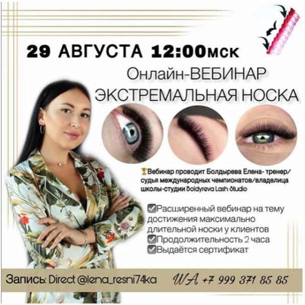 Полуторачасовой вебинар от лучшего лешмейкера России Юлии Ведровой! Вебинар по техникам объемного наращивания ресниц Большой объем информации, который выдается на очных тренингах Юлии. Узнаете, как наращивать обхемные ресницы быстро и правильно!