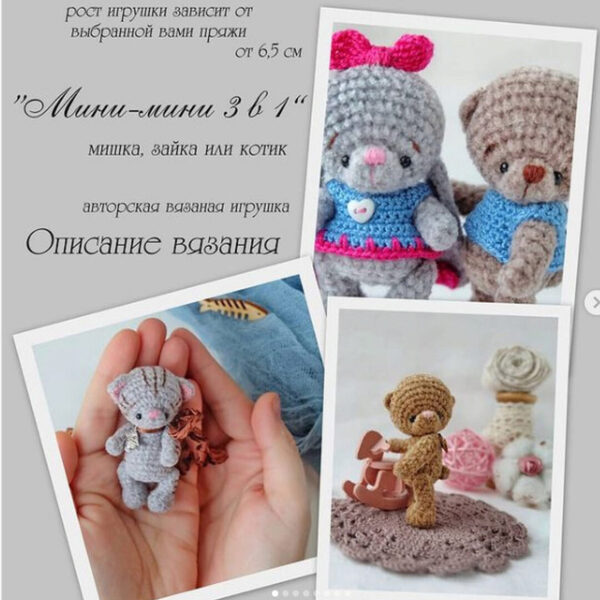 Свершилось! МК 3в1 (тигр-мишка-зайка) ГОТОВ (формат PDF с подробным описанием, множеством пошаговых фотографий) стоимость 300 руб.