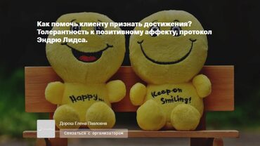 Отзывы о курсе «Как помочь клиенту признать достижения? Толерантность к позитивному аффекту, протокол EMDR Эндрю Лидса» от Елены Дорош