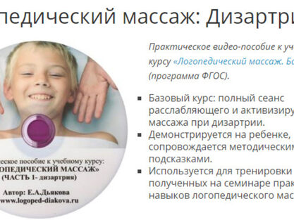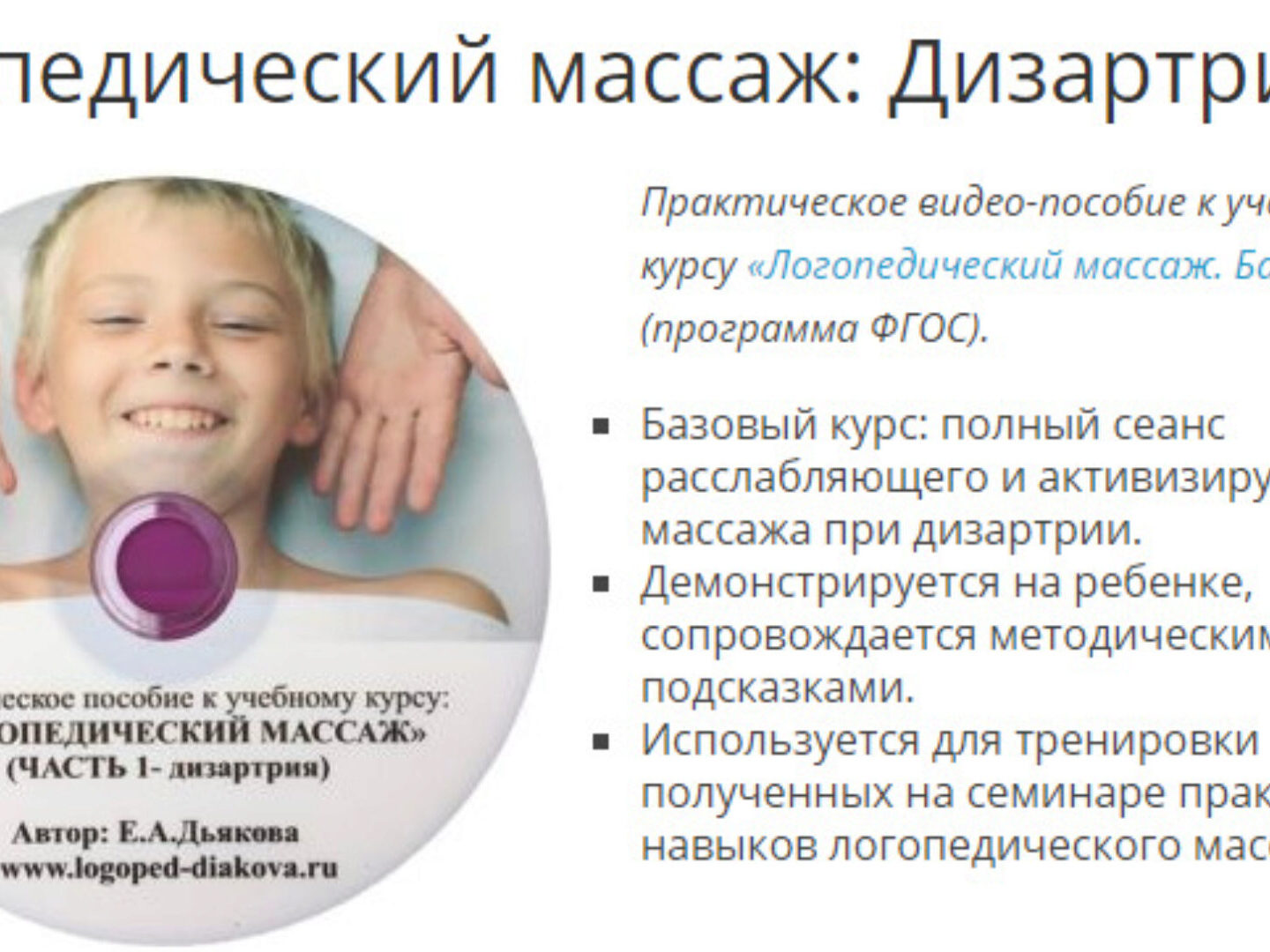Елена Дьякова Электронное видео пособие «Логопедический массаж при разных формах дизартрии»