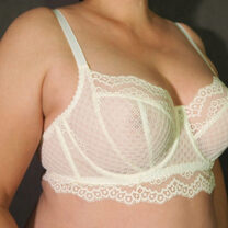 Выкройка построена на основе гибридной чашки (овально-квадратной). Поэтому, по основанию чашек нет каркасов. Конкретно в этом изделии не стала применять даже боковые кости. Я считаю, что в средних и больших размерах боковые кости нужно ставить либо по две (или по три) с каждой стороны, либо вообще